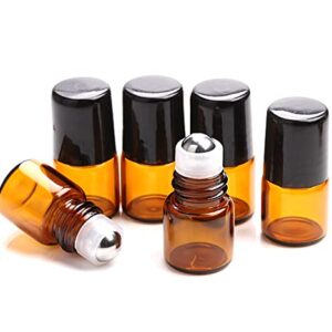 Furnido 25 Pack 1ml Amber Glass Roll on Bottle For Essential Oils,Perfume Vial with Stainless Steel Roller Ball,Black Caps Mini Sample Vials Cosmetics Small Container