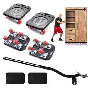 Furniture Moving Tools, Heavy Duty Furniture Lifter Kit, Safe Furniture Transport Hand Tool Include 4 Universal Wheel Sliders and Crowbar, for Sofa Refrigerators Various Furniture, Black, HL