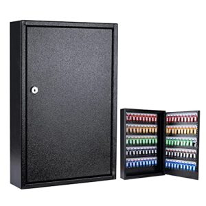 Furnishh Key Box Wall Mount 100 Position Metal Locking Key Cabinet Organizer with Key Tags Key Safe Security Storage Lockbox Holder for Valets, Hotels, Car and House Keys, Key Keeper Box – Black