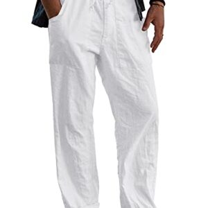 Gafeng Mens Linen Pants Yoga Beach Loose Fit Casual Summer Elastic Waist Drawstring Baggy Trousers with Pockets