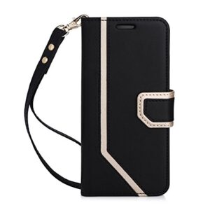 FYY Leather Case with Mirror for Samsung Galaxy S8, Leather Wallet Flip Folio Case with Mirror and Wrist Strap for Samsung Galaxy S8 Black