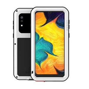 Galaxy A30 Case,Galaxy A20 Case,HuiFlying Aluminum Alloy Metal Gorilla Glass Outdoor Rugged Heavy Duty Bumper Hybrid Silicone Military Shockproof Cover for Samsung Galaxy A30/Galaxy A20 (White)