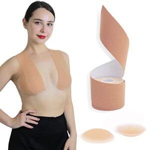 GAKI Store Boob Lift Tape for Large Breasts, Boobytape for Breast Lift Sweat-proof, Skin-friendly using Medical Material Test, Bob Tape + 1 Pair Reusable & Washable Silicone Nipple Cover Nude