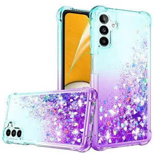 Galaxy A13 5G Case, Samsung A13 5G Case with HD Screen Protector, Gritup Girls Women Cute Gradient Liquid Glitter Bling Four-Corner Protective Soft TPU Phone Case for Samsung Galaxy A13 5G Teal/Purple