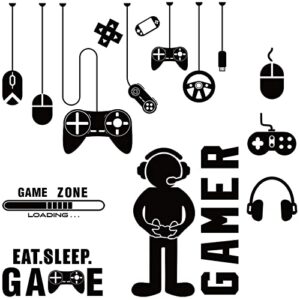 Gamer Sticker, Eat Sleep Game Wall Decal,Gamer with Controller Wall Decal, Game Zone, Video Game, Wall Stickers Mural for Home, Playroom Bedroom Decoration (Black)