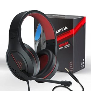 Gaming Headset Noise Cancelling Headphones with Microphone Kids and Adults 50mm Neodymium Drivers & 3.5mm Audio Jack Wired Over Ear Stereo Earphones for Online School/PC Game/Travel/Work Red
