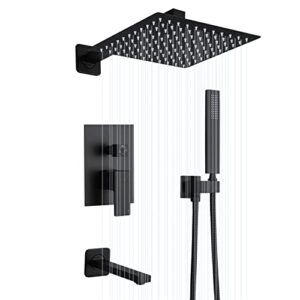 GAPPO Shower System Wall Mounted High Pressure 10 Inch Rain Shower Head System With Tube Rainfall Shower Faucet Shower Combo Set with Handheld Rough-in Valve Included,Black Matte
