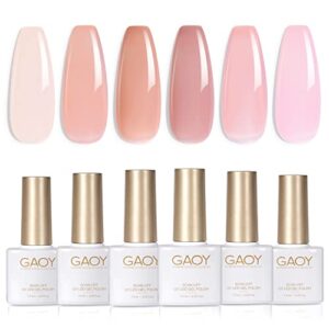 GAOY Jelly Nude Pink Gel Nail Polish Set of 6 Transparent Colors Sheer Gel Polish Kit