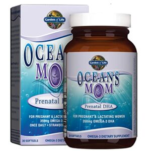 Garden of Life Oceans Mom Prenatal Fish Oil DHA, Omega 3 Fish Oil Supplement – Strawberry, 350mg Prenatal DHA Pregnancy Fish Oil Support for Mamas, Babys Brain & Eye Development, 30 Small Softgels