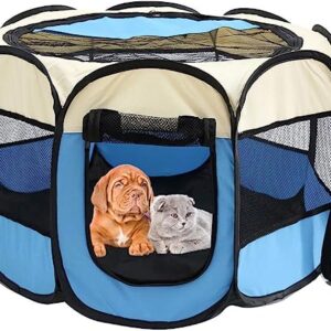 Gaorui Portable Foldable Pet Playpen Exercise Kennel Indoor Outdoor Cage Removable Mesh Shade Cover for Dogs Puppy Cats Kittens Rabbits Large