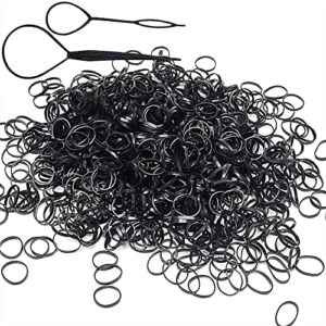 3000 PCS Hair Bands, Black Elastic Hair Band, Mini Hair Rubbers Ties for Girls Ponytail Hair Accessories, Soft Elastic Bands Non-Slip Small Hair Ties, with 2 PCS Topsy Tail Hair Tools.