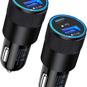 30W USB C Car Charger, [2Pack] PD 3.0 Fast Charge Dual Port USB Type C and 2.4a USB A Cargador Carro Lighter Adapter Base for iPhone, iPad, Samsung Galaxy, LG, Google Pixel GPS, Z Play Droid, Motorola
