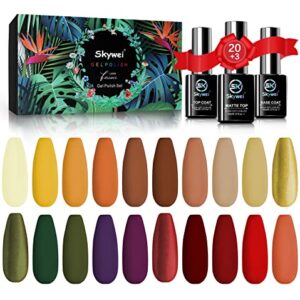 Gel Nail Polish Kit Halloween Nail Polish Set with Base and Top Coat Matte Pumpkin Yellow Green Red Purple Brown Glitter Party Decoration Nail Art LED UV Light Cure Long Lasting Gel Polish Set (20 Colors+3 Clear Gel)