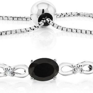Gem Stone King 925 Sterling Silver Black Onyx and White Lab Grown Diamond Tennis Bracelet For Women (3.52 Cttw, 7X5MM Oval Gemstone, Adjustable up to 9 Inches)