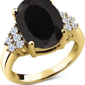 Gem Stone King 18K Yellow Gold Plated Silver Black Onyx and White Topaz Women Ring (4.40 Cttw, Oval 12X10MM, Gemstone Birthstone, Available In Size 5, 6, 7, 8, 9)