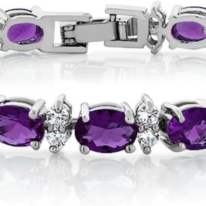 Gem Stone King 20.00 Ct Oval and Round Purple Color Cubic Zirconias CZ Women Tennis Bracelet 7 Inch