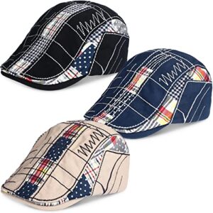 Geyoga 3 Pack Men Beret Hat Patchwork Newsboy Hats Adjustable Cabbie Hats for Men Cotton Flat Cap for Driving Hunting Fishing Outdoor Activities