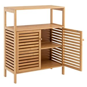 Giantex Bathroom Storage Cabinet, Freestanding Storage Organizer w/Open Shelf & Double Louvered Doors, Removable Shelf, Bathroom Cabinet for Living Room, Kitchen, Entryway Bamboo Floor Cabinet
