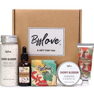 Gifts for Women, Bath and Body Set with Cherry Blossom Scent Spa Kit Gift Set for Her,Massage Oil,Scented Candle,Bath Salt,Hand Cream & Soap,Birthday Gifts Box for Women Mom Best Friend 5PC Bath Set