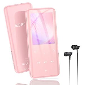 32GB MP3 Player with Bluetooth 5.0, AGPTEK A17X 2.4″ Curved Screen Music Player with Speaker Lossless Sound with FM Radio, Voice Recorder, Supports up to 128GB Pink