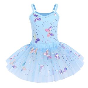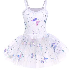 Girls Butterfly Sequins Camisole Ballet Dance Dress Glitter Ruffle Tutu Skirt Leotard Ballerina Costume for Toddler Kids