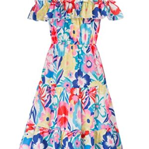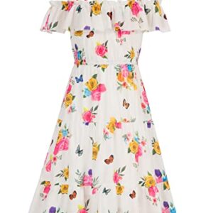 Girls Summer Dress Off Shoulder Ruffle Floral Spaghetti Strap Casual Sundress Tiered Midi Dress