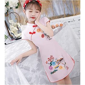 Girls Dress Qipao Vintage Chinese Cheongsam Princess Hanfu Princess Dress (Color : Pink, Size : 110)