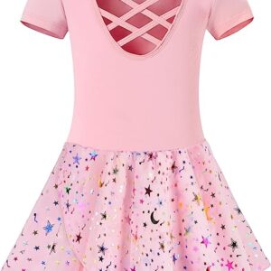 Girls Ballet Leotards for Dance Skirted Short/Long/Ruffle Sleeve Hollow Crisscross Back Kids Shiny Tutu Dress Dance wear