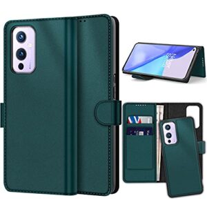 GooseBox Oneplus 9 Case with Wallet and Card Slots, 2 in 1 Magnetic Split Fiber Leather Flip Cover for Oneplus 9 (Green)