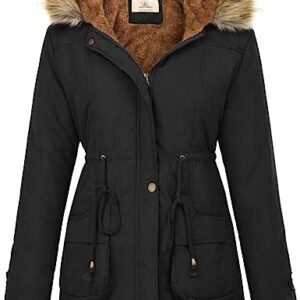 GRACE KARIN Womens Hooded Warm Winter Thicken Fleece Lined Parkas Long Coats