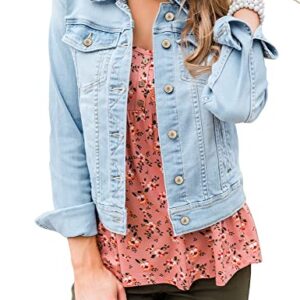 GRAPENT Women Basic Button Down Long Sleeve Stretchy Jean Trucker Denim Jacket