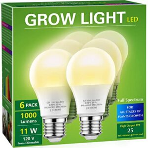 Grow Light Bulbs, Briignite LED Grow Light Bulb A19 Bulb, Full Spectrum Grow Light Bulb, Plant Light Bulbs E26 Base, 11W Grow Bulb 100W Equivalent, Grow Light for Indoor Plants, Seed Starting, 6 Pack