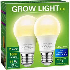 Grow Light Bulbs, Briignite LED Grow Light Bulb A19 Bulb, Full Spectrum Grow Light Bulb, Plant Light Bulbs E26 Base, 11W Grow Bulb 100W Equivalent, Grow Light for Indoor Plants, Seed Starting, 2Pack