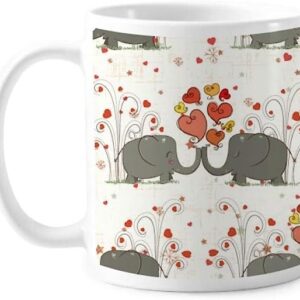 Grey Kissing Elephants Valentine Day Mug Pottery Ceramic Coffee Porcelain Cup Tableware