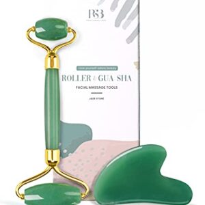 Gua Sha & Face Roller Jade Roller for Face – Natural Healing Crystal Self Care Gifts for Women – Facial Skin Care Tools Muscle Roller Massager Relaxing Relieve Wrinkles (Green)
