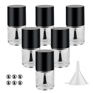 GTHER 6PCS 10ML Empty Nail Polish Glass Bottles with Brush Cap & Funnel & Mixing Balls for Nail Art