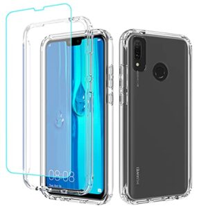 Gufuwo Case for Y9 2019 Case, JKM-LX1 JKM-LX2 JKM-LX3 Case with Tempered Glass Screen Protector, Clear 360 Full Body Protection Hard Shell+Soft TPU Shockproof Cover Cases for Huawei Y9 2019 (Clear)
