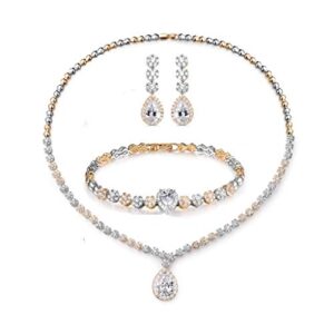 Hadskiss Jewelry Set for Women, Necklace Dangle Earrings Bracelet Set, White Gold Plated Jewelry Set with White AAA Cubic Zirconia, Allergy Free Wedding Party Jewelry for Bridal Bridesmaid