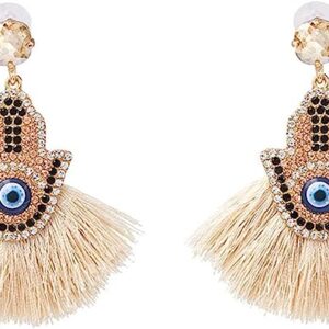 Handmade Women Hand Evil Eyes Tassel Statement Handmade Dangle Fringe Palm Earrings Multicolor Crystal Beaded Wedding Party Gifts