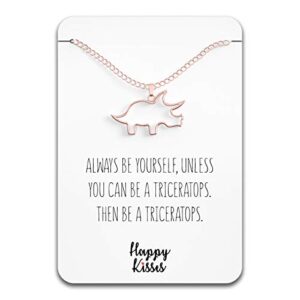 Happy Kisses Dinosaur Triceratops Necklace – Cute Pendant Gift for Women or Kids – Sweet & Funny Message Card