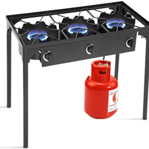 HAPPYGRILL Outdoor Camping Stove 3-Burner High Pressure Propane Gas Camp Stove with Detachable Legs