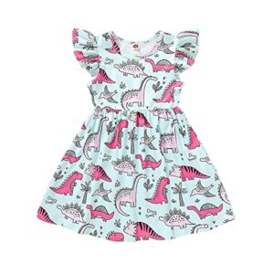 Happy Town Kids Baby Girls Dinosaur Dress Clothes Fly Ruffle Sleeve Dinosaur Tutu Skirt Sundress Summer Casual Dress