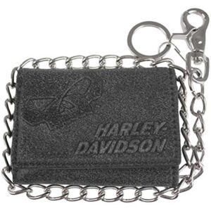 Harley-Davidson Men Skull Graphite TriFold Short Leather Wallet UN4663L-GRYBLK