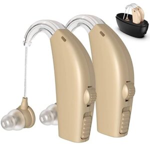 Hearing Aids for Seniors with Noise Cancelling, Rechargeable Hearing Aids for Adults Hearing Loss with Volume Control, Digital Hearing Amplifier Hearing Assist Devices with Charging Box (Beige)