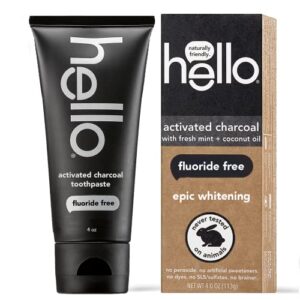 Hello Oral Care Activated Charcoal Teeth Whitening Fluoride Free and SLS Free Toothpaste, 4 Ounce (Pack of 1)