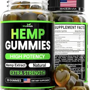 Hemp Gummies – Extra Strength – Sleep & Calm Mood – Gummy for Relief with Pure Hemp Oil Extract, Ashwagandha – High Potency Supplement – Edible Candy – 90 Edibles – Made in USA