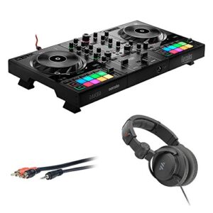 Hercules DJControl Inpulse 500 DJ Software Controller with Polsen HPC-A30-MK2 Monitor Headphones & Mini to 6 RCA Cable Bundle