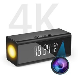 Hidden Camera Alarm Clock 4 in 1 WiFi Spy Camera Clock – Bluetooth Speaker – Ambient Mood Light – 4K Security Camera with Night Vision and Motion Detection— Nanny Camera Indoor with Remote View