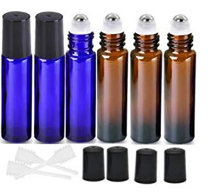 HINNASWA Essential Oil Roller Bottles, Empty Refillable Roll on Glass Bottles, Leak proof Glass Bottle, Stainless Steel Balls for Essential Oil (Amber, Blue)