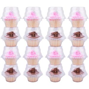 Himetsuya Cupcake Boxes Individual Cupcake Containers, 50 Packs Regular Single Cupcake Holder High Topping for Muffins, Thicker Stackable Plastic Cupcake Carrier for Party (50 pack)